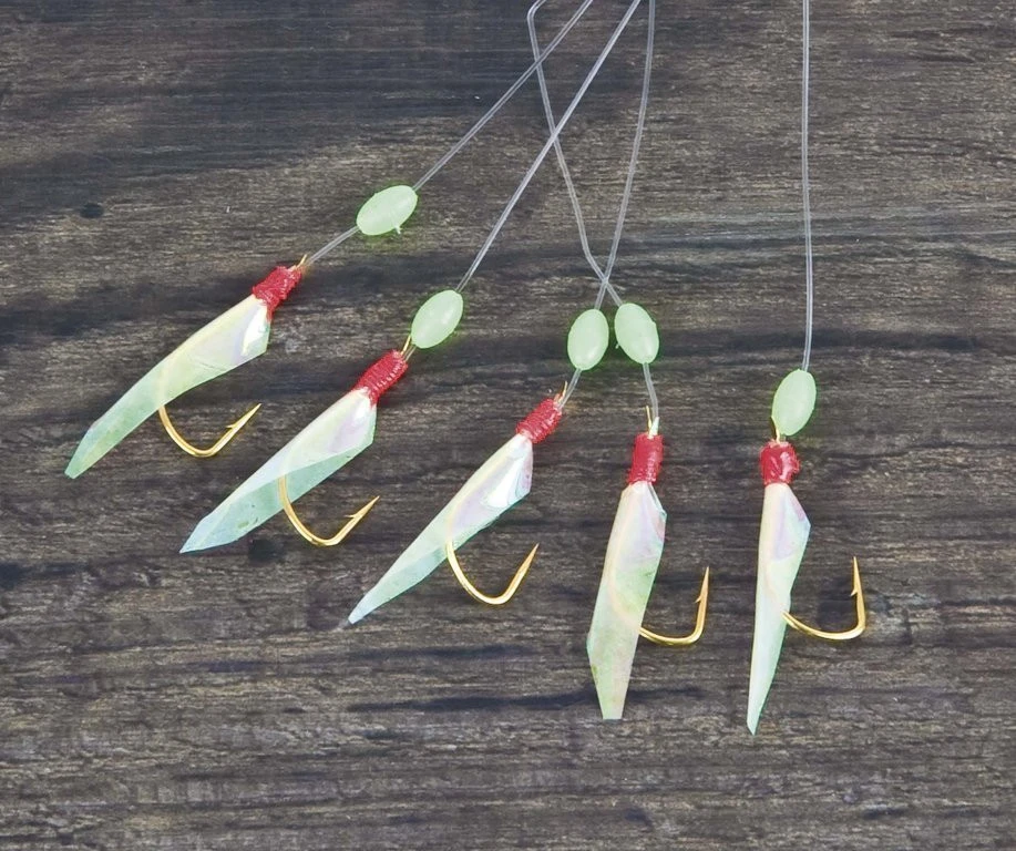 Heringsvorfach mit 5 Goldhaken und echter Fischhaut.