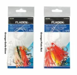 Das System hat eine Länge von 160cm und die zwei Einzelhaken der Größe 6/0 sind an einer 0,75mm starken monofilen Schnur befestigt. Die Größe des Octopus ist ca. 18cm.