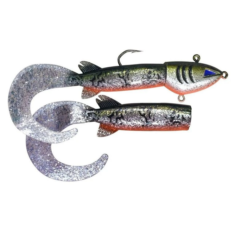 Dieser Gummiköder besitzt einen Gummi-Twister-Schwanz der an einen 250g schweren Jigkopf montiert ist. Dieser Giant Dorschknaller gilt als einer der fängigsten Meeresköder. Das Einsatzgebite erstreckt sich von Dorsch bis Köhler. Der Bleikopf (250 g) ermöglich durch seine spitze Form ein schnelles Absinken direkt zum Fisch. Die Farbmuster wurden so gewählt, das für jede Wetterlage das richtige Farbmuster dabei ist. Im Lieferumfang ist ein montierter sowie ein Ersatzschwanz enthalten.