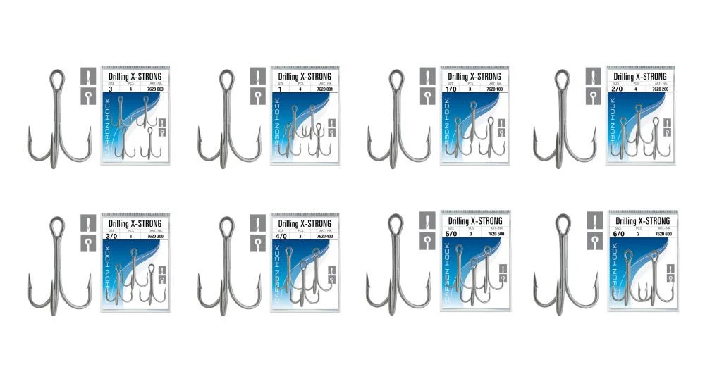 Dieser vernickelte und starke Drilling ist ideal für die Meeresangelei, um defekte ooder zu schwache Drillinge zu ersetzen. Je nach Größe sind 4 bis 2 Stück in jeder Packung enthalten. Die Haken stehen in den Größen 3 bis 6/0 zur Verfügung.