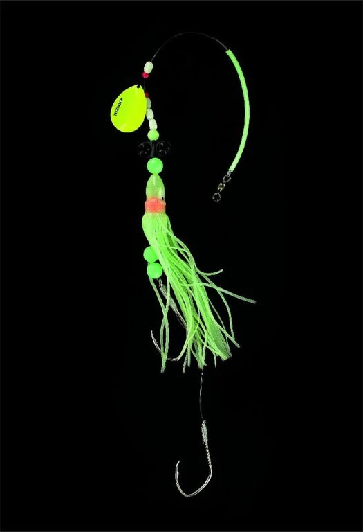 Eins der kompaktesten Naturködersysteme für den Einsatz im Nordatlantik! Ausgelegt für Grundfische wie Dorsch, Leng, Lump und Seewolf sowie im Freiwasser für Köhler, Dorsch und Heilbutt. Entwickelt zum Fischen mit Fischfilet, der sog. Flattermakrele, oder einem ganzen Köderfisch. Als Nachlaufsystem wird es hinter einem Seitenarm oder idealerweise hinter einem Durchlauf-Running-Boom System gefischt. Dieses Vorfach wurde von Torsten Ahrens entwickelt und hat sich schon oft als fängig erwiesen.