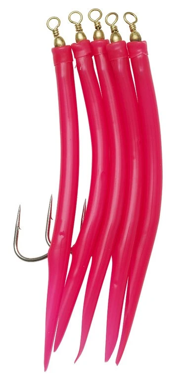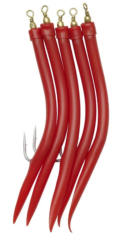 Das klassische Makk-Fischen hat in Skandinavien eine lange Tradition. Bei diesen Makks haben Sie Wahl aus 5 verschiedenen Farben und fünf Größen von 4/0 – 12/0. Ausgestattet sind sie mit Perma Steel Haken und Silikonschlauch.