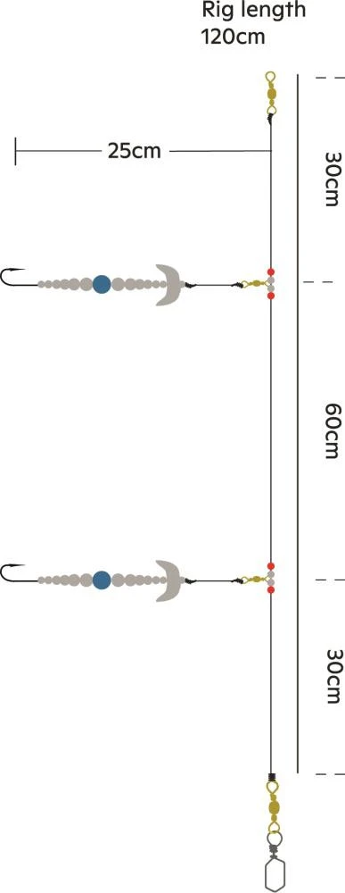 Dieses kurze Zwei-Haken-Vorfach kann sowohl zum Werfen als auch zum Bootsangeln verwendet werden. Mit dieser klassischen Doppelhaken-Spinner-Montage sind Sie für eine breite Palette von Angelmethoden und Fischarten gerüstet.