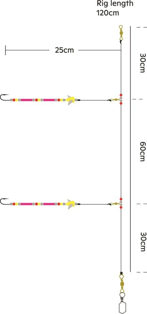 Dieses leichte Boot und Brandungs-Vorfach ist perfekt für kleinmäulige Plattfische oder wählerische Dorsche. Bunte Attraktoren mit schwimmenden Spinnerblättern können Ihre Köder unter verschiedensten Bedingungen präsentieren. Ein Muss!
