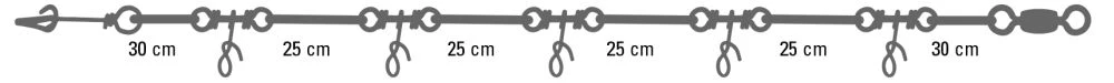 Mit dieser revolutionären Vorfach-Schnellwechsel-Methode, dem Mustad Fastach Leader System, sind Sie in der Lage in wenigen Sekunden Ihre Montage zu wechseln. Es ist also möglich verschiedenfarbige Jigs in die Vorfachschnur einzusetzen, um festzustellen, auf welche Farbe die Fische gerade stehen. Sollte sich eine spezielle Farbe herauskristalisieren, so können in Sekundenschnelle die anderen Jigs gegen die fängige Farbe ausgetauscht werden. Die hat natürlich den Vorteil, dass Sie nicht verschiedene Vorfächer mit verschiedenfarbigen Jigs mitführen müssen, sondern nur eine Main Line und entsprechende Einhänger. Die Mundschnüre sind alle mit einem Mustad Ultrapoint Haken geknotet und werden auf einem praktischen Aufwickler geliefert. So haben Sie immer Ordnung in Ihrer Ködertasche.