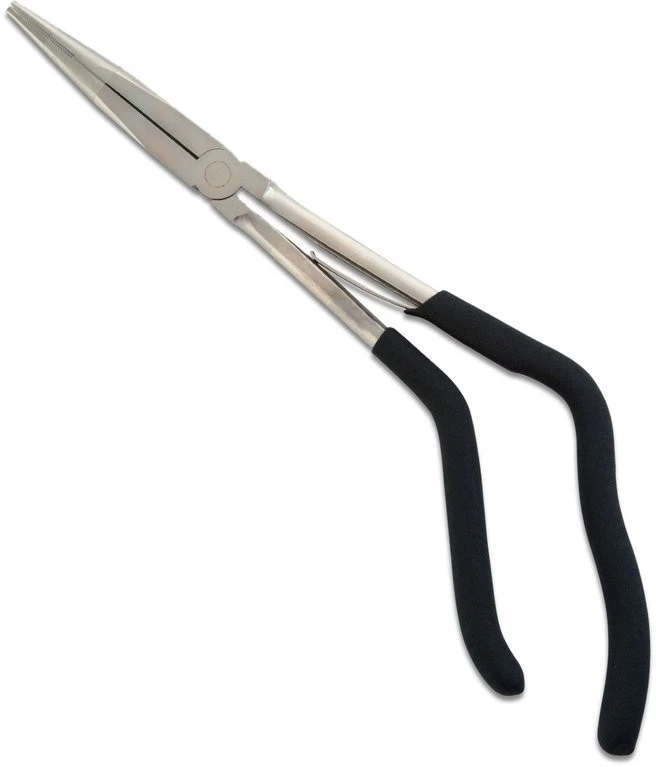 Das schonende und sichere Entfernen des Hakens aus dem Raubfischmaul ist mit dieser eleganten Zange kein Problem mehr. Durch die Verlängerung zwischen Griff und Hakenaufnahme gewinnt der Angler Abstand zwischen seinen Fingern und den scharfen Zähnen seines Fanges und kann den Haken schnell und schonend entfernen. Beliebt bei Hecht-, Wels- und Meeresanglern.