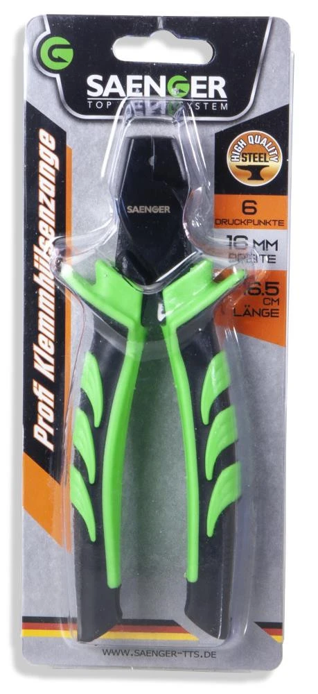 Diese Klemmhülsenzange ist ideal für die SAENGER Klemmhülsen mit einer Breite von 10mm und 16mm. Für beide Breiten gibt es je in Zange.