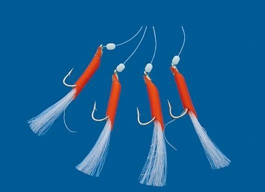Das System besitzt vier Haken der Größe 5/0 oder 7/0, welche mit rotem Schlauch, Glitter und Franzen verziert sind. Diese sind an einer starken 0,60mm starken Schnur befestigt.
