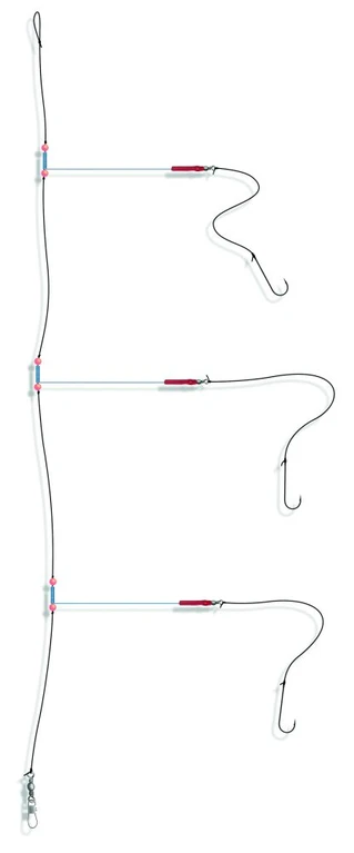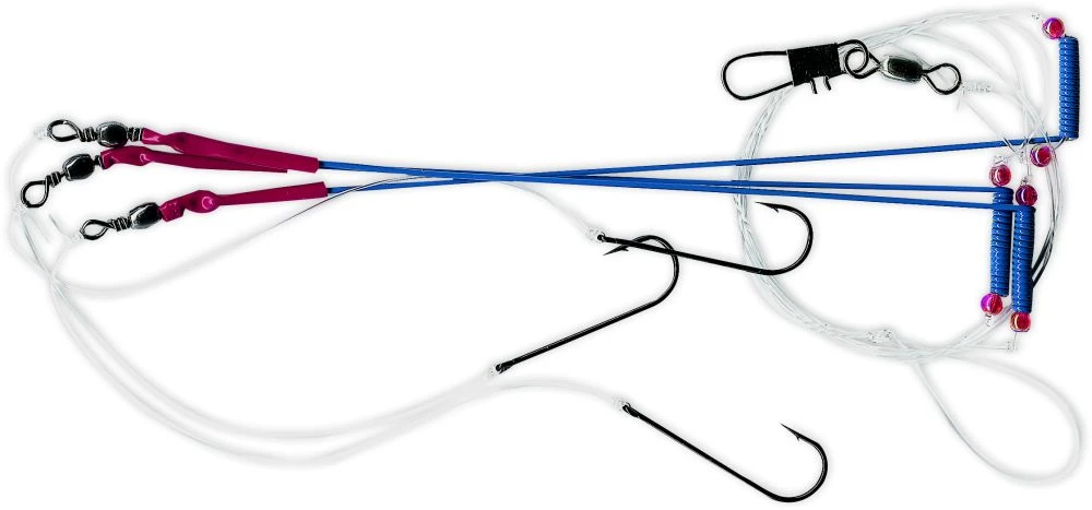 Dieses Plattfischvorfach ist speziell für das Angeln vom Boot konzipiert. Es gibt zwei verschiedene Varianten mit Hakengröße 4 und 6. Die Hauptschnur hat eine Stärke von 0,60mm und die Seitenarmen von 0,40mm. Das Vorfach besitzt 3 Haken und ist 120cm lang.